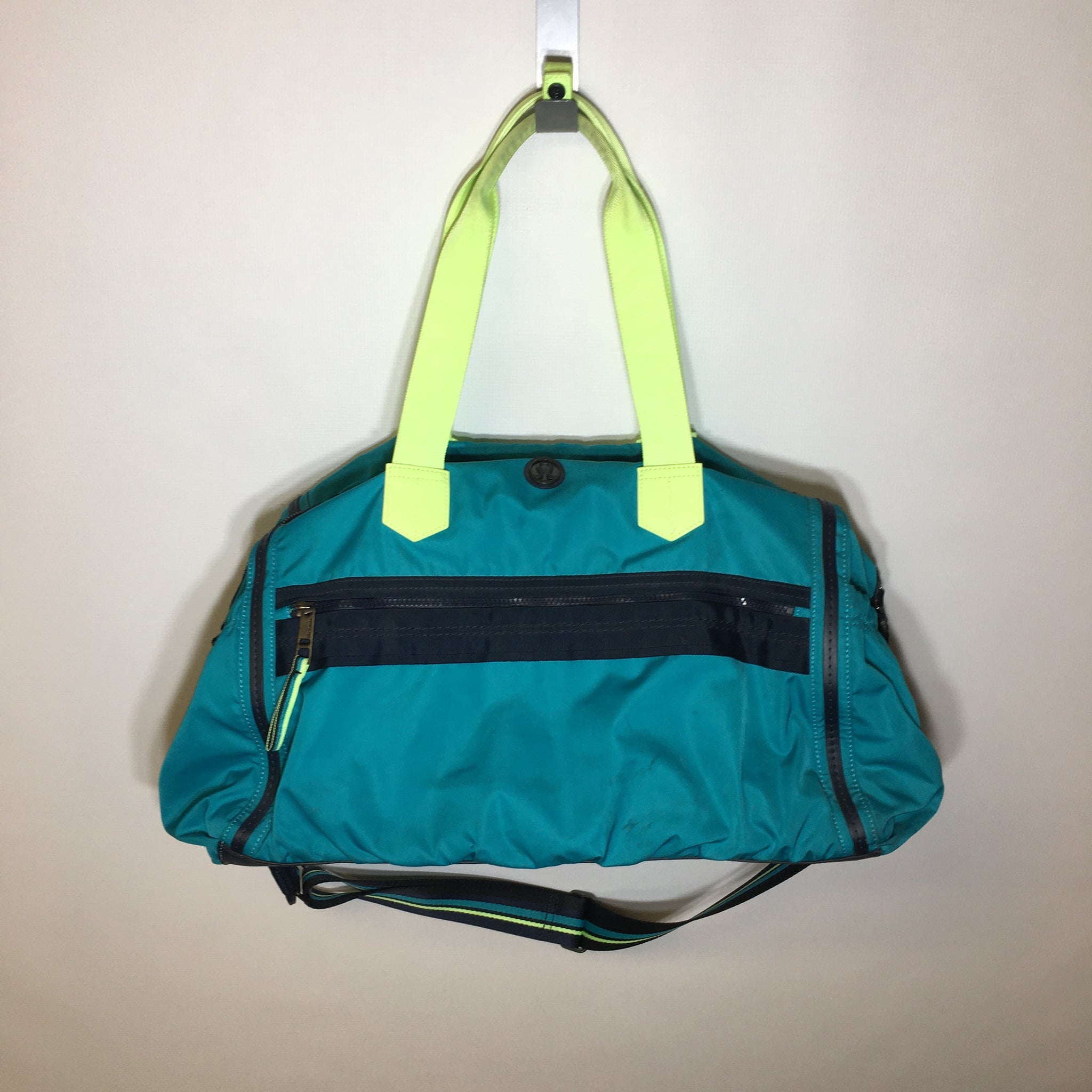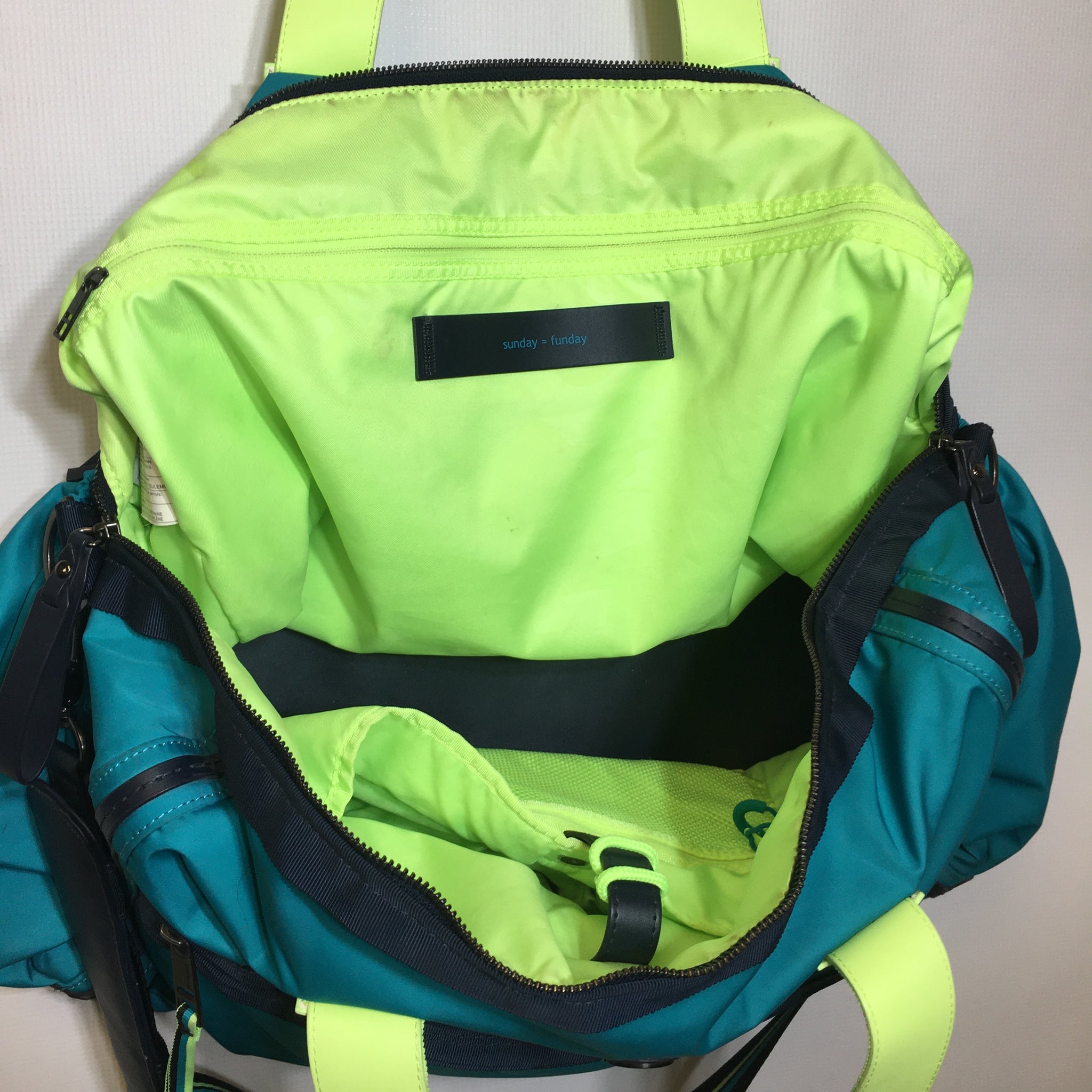 Ready to hit the gym in style? This pre-owned Lululemon Sunday Funday Gym Duffle Bag (25L capacity) is your new workout companion. With its sleek design and durable construction, it's built to handle everything from sweaty gym clothes to post-workout essentials. The spacious interior keeps your gear organized, while quality materials ensure it'll stick with you through countless training sessions. Perfect for athletes who want premium gear without the premium price tag. Grab yours and get moving!