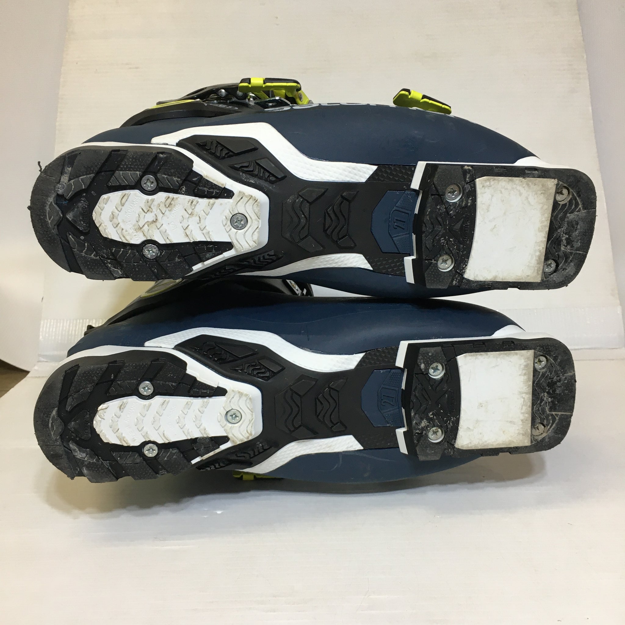 Experience reliable performance on the slopes with these pre-owned Salomon Quest Pro Sport downhill ski boots in size 27.5. Designed to provide solid support and comfort, they help enhance your stability and control during your descent. The navy blue color adds a stylish touch, while the trusted Salomon build quality ensures durability for many ski days to come. Ideal for skiers seeking dependable equipment without the new gear price.