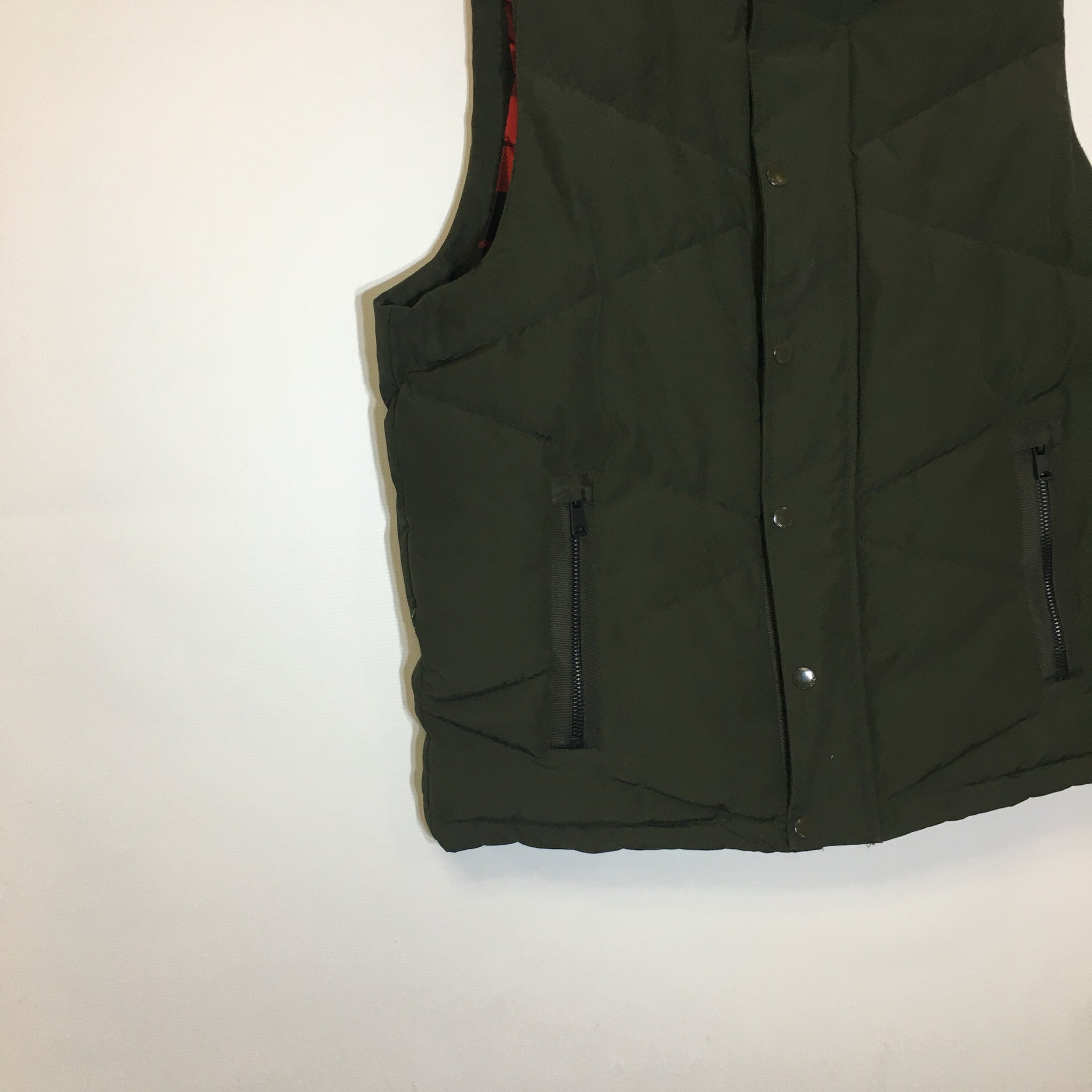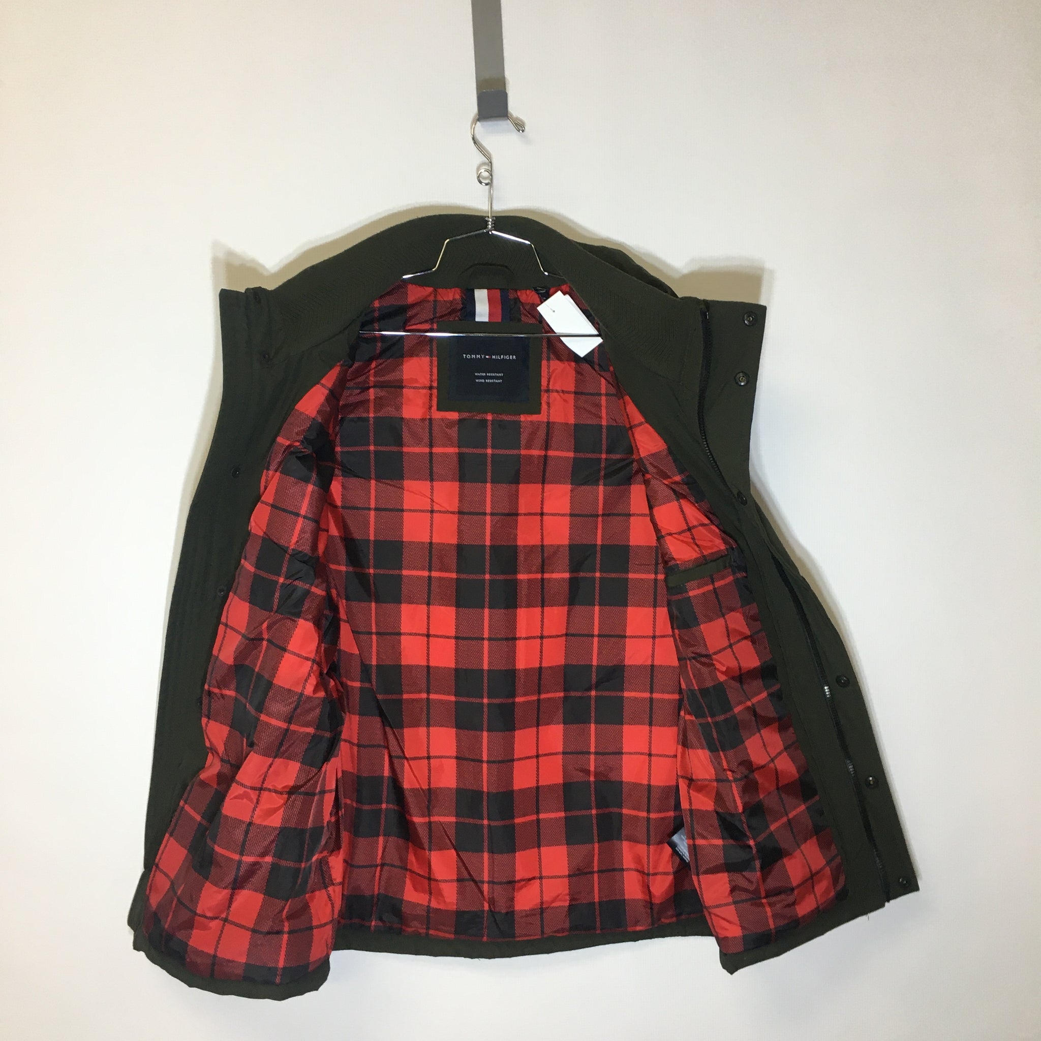 Tommy Hilfiger Men's Insulated Vest delivers reliable warmth and weather protection for outdoor adventures. This pre-owned Large features water and wind-resistant construction, making it ideal for layering during cool-weather activities. The classic army green and plaid design pairs easily with your existing gear collection. In good pre-owned condition, this vest offers quality insulation at a practical price point. Perfect for hiking, camping, or everyday outdoor wear when you need extra protection without bulk.